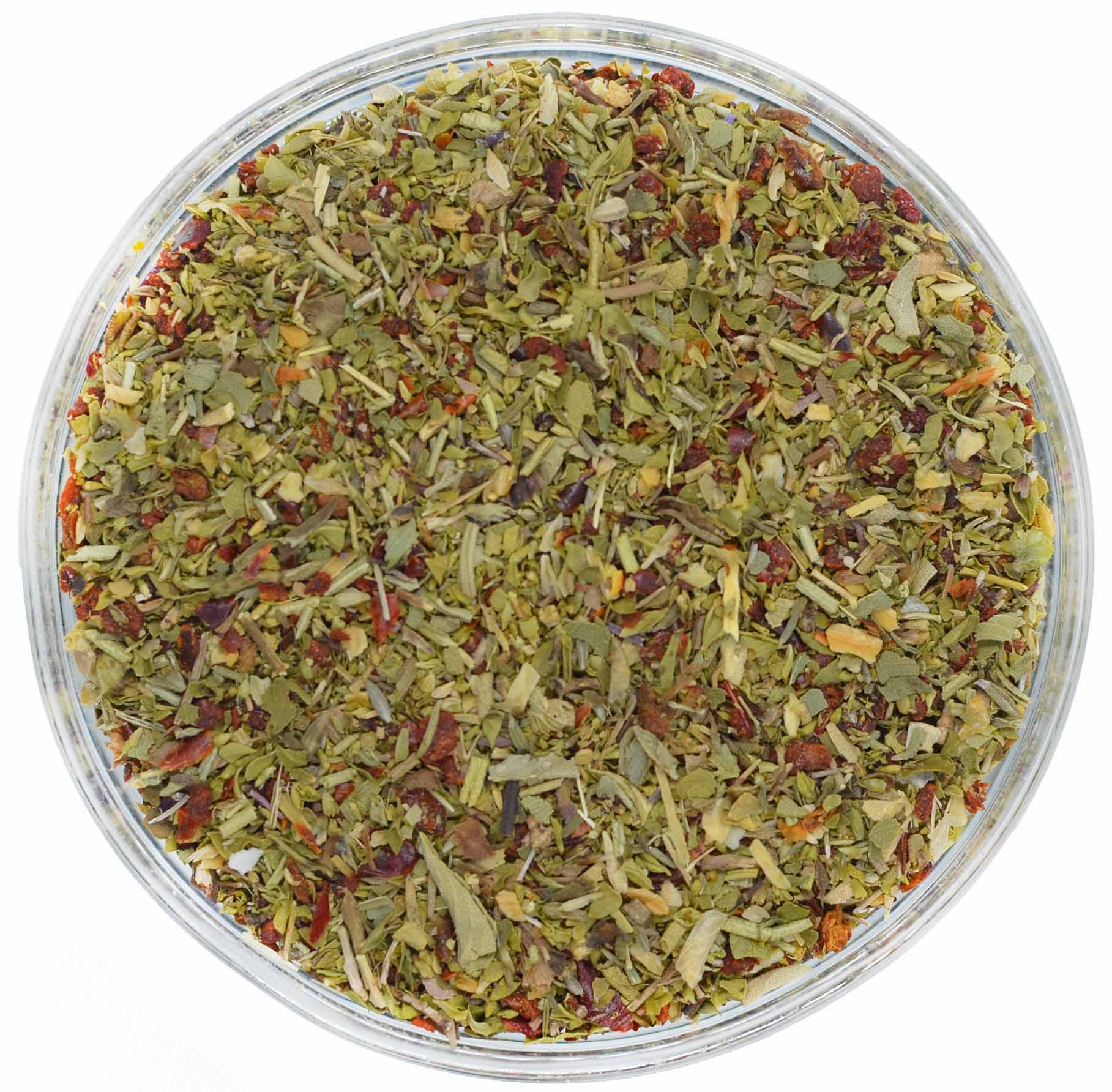 Sudedamosios dalys: raudonoji paprika*, raudonėliai*, žieminiai česnakai*, svogūnai*, rozmarinai*, saldžiojo baziliko lapai*, česnakai*, čiobreliai*, lauro lapai*. *Ekologiški ingredientai.